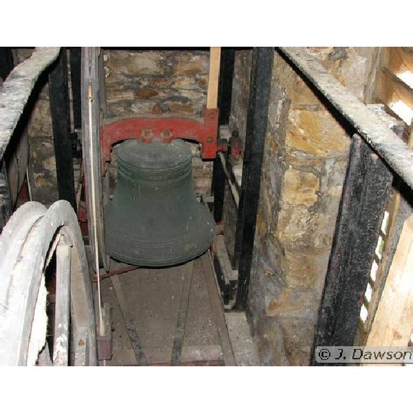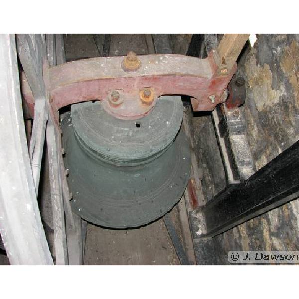 There is a ring of six bells. The original bell frame was made in 1751 by Harrison of Barrow in Lincolnshire. The bells were re-hung in 1926 and the new frame is shown above. This new frame holds 6 bells, but was made for 8.