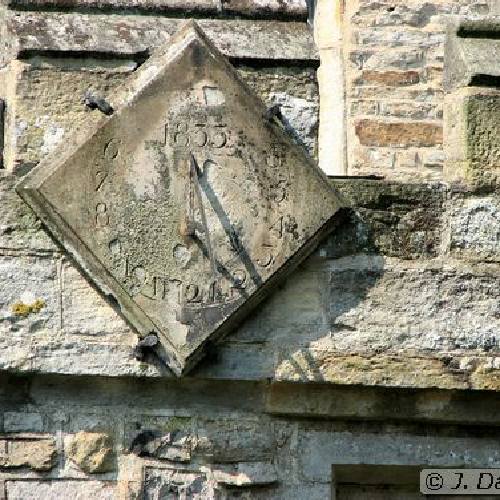The sun-dial shown is high on the South wall near the porch. It is dated 1833.