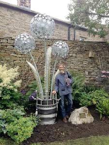The photograph of the sculpture and the artist Michael Kusz is by Malcolm Creese, artistic director of the Swaledale Festival.